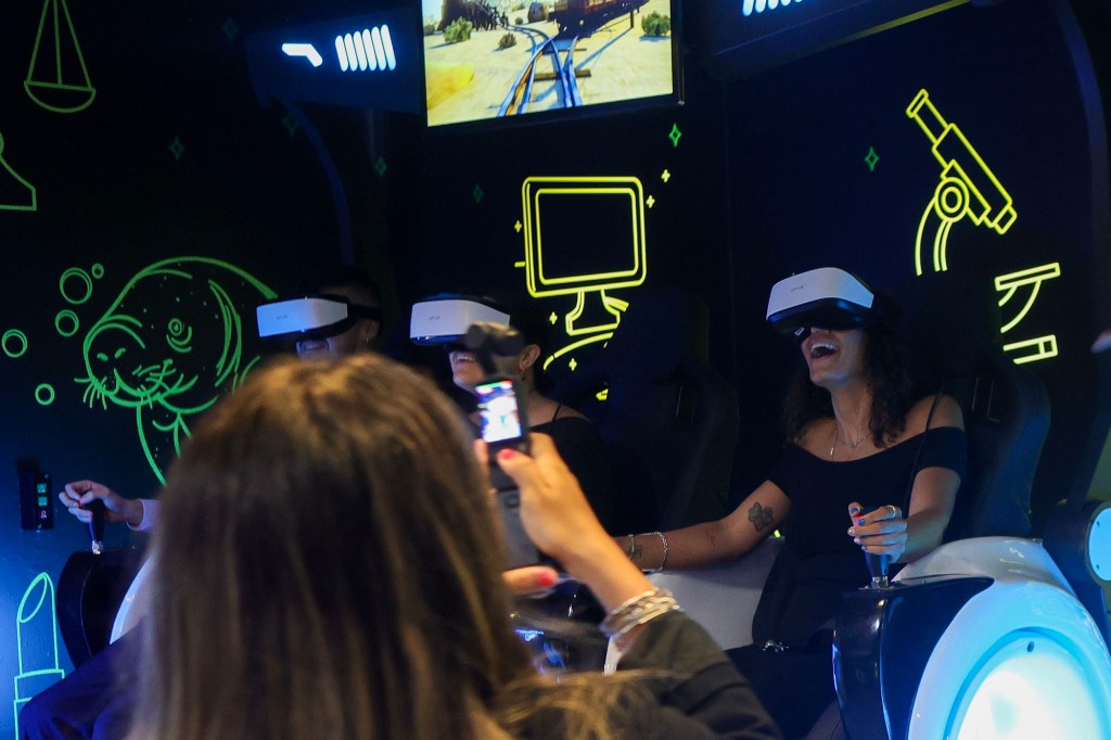 Por su parte, la directora de relaciones públicas y comunicaciones de la institución, Zaima Y. Negrón Guzmán compartió que esta experiencia inmersiva en el remodelado espacio de la Inter en el Coliseo cuenta con dos modernos sistemas de realidad virtual de tres asientos cada uno sincronizados con efectos especiales. “Cada participante se sumerge por completo en mundos fantásticos, aventuras vibrantes, paisajes extremos o escenarios futuristas, todo mientras utiliza gafas de realidad virtual que maximizan la inmersión visual y auditiva”, detalló.