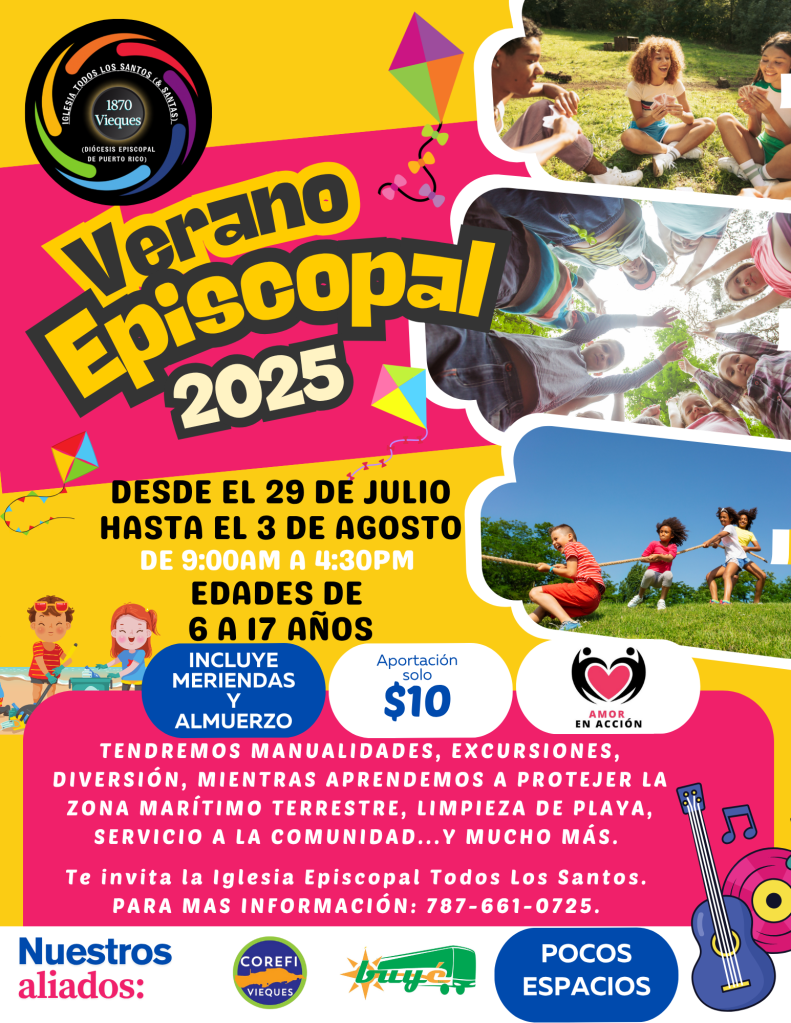Este año, la Iglesia Episcopal Todos los Santos trae su Programa de Verano para niñas, niños y jóvenes de Vieques… ¡Y te necesitamos para hacerlo realidad!