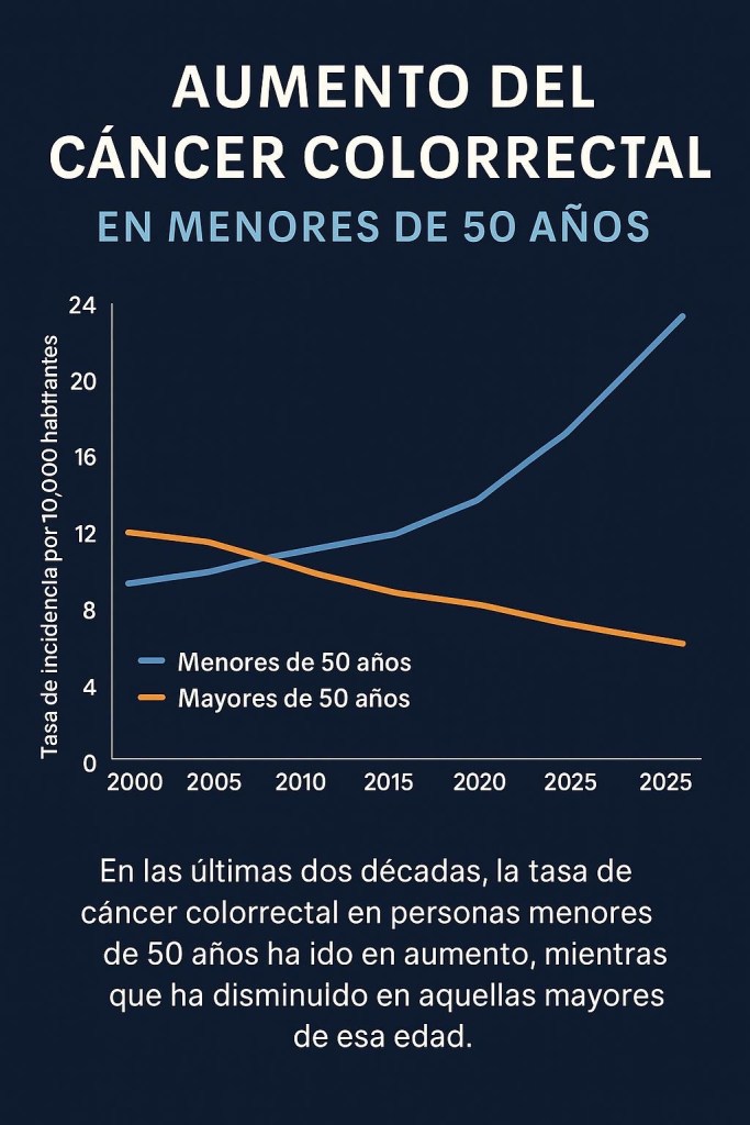 La incidencia de cáncer colorrectal en adultos menores de 50 años ha experimentado un alza alarmante en todo el mundo en los últimos años. Entre 1990 y 2019, se registró un aumento del 79 % en casos en personas jóvenes, reflejo de cambios profundos en estilos de vida modernos.