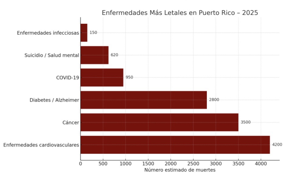 Puerto Rico atraviesa una etapa crítica en términos de salud pública. Los datos más recientes revelan que las enfermedades crónicas, junto con ciertos padecimientos infecciosos, continúan cobrando miles de vidas cada año en la isla.