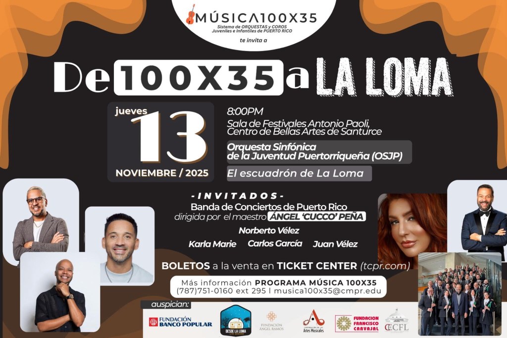 (San Juan, Puerto Rico — octubre de 2025) – El Programa Música 100×35 del Conservatorio de Música de Puerto Rico anuncia la presentación de su nueva producción titulada De 100×35 a La Loma, un concierto que rinde homenaje a la salsa desde el formato orquestal.