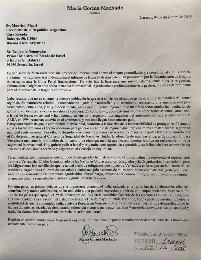 Con el debido respeto que usted me merece, no es llevando a Netanyahu a una acción por Venezuela como se ayudará al pueblo venezolano. Eso solo puede significar genocidio sobre el pueblo y agresión ilegal armada e internacional sobre Venezuela.