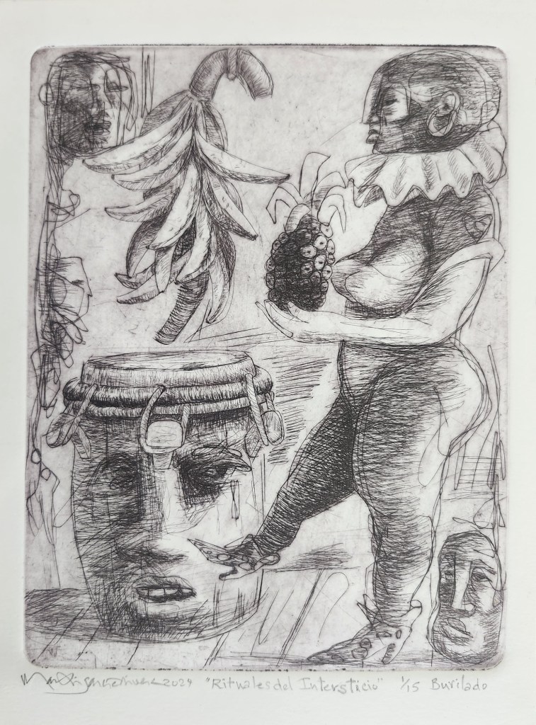 Las obras sumadas abarcan diferentes disciplinas artísticas, incluyendo textil, dibujo, fotografía y grabado de los artistas: Indio Meléndez, Madeline Pérez Pimentel, Jesús Cardona Torres, José Otero Morales, Gabriela Vázquez Santiago, Imna Arroyo Cora, Andrés Miró Lugo, Ahisamar Antonia Rosario Romero, Martín García Rivera, Lydianna Dávila Colombo, Yelimska Crespo Feliciano, Isabel Padilla Bonelli, José Arturo Ballester Panelli, Alejandro Fundora Sabalier, Abner Romero Rosario, Jafet Cruz Codero y Maritza Davila – Irizarry.
