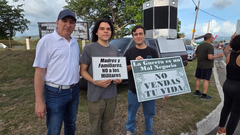 La protesta, que reunió a organizaciones, líderes comunitarios, jóvenes y familias, reafirmó el reclamo histórico del pueblo puertorriqueño en contra de la guerra y la militarización del suelo boricua.
