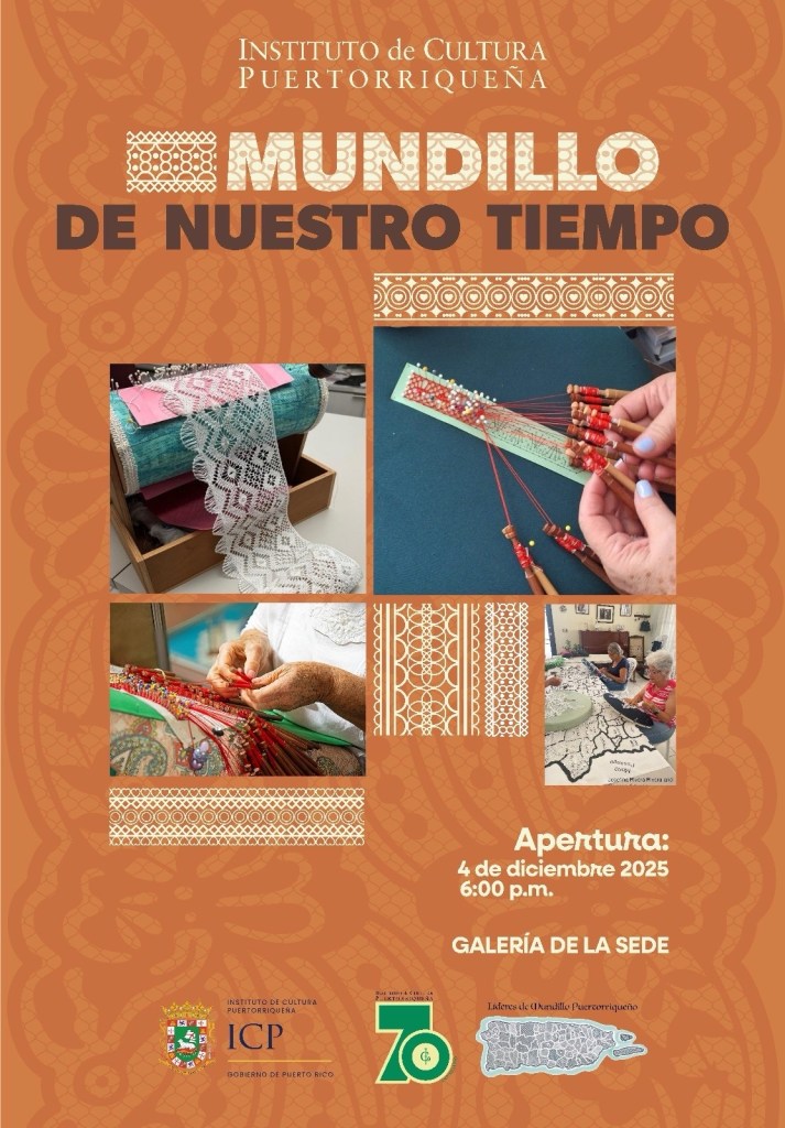 Al mismo tiempo, la exposición El mundillo de nuestro tiempo presenta la delicadeza y maestría del encaje de mundillo, técnica artesanal realizada con bolillos de madera para crear elaborados patrones aplicados en indumentaria y textiles tradicionales puertorriqueños. Esta muestra reconoce el trabajo de las tejedoras y la aportación del colectivo Líderes del Mundillo, responsable de fortalecer la conservación y la promoción de esta artesanía, así como de impulsar la creación del Día Nacional del Mundillo Puertorriqueño, establecido por la Ley 20 del 12 de enero de 2023.