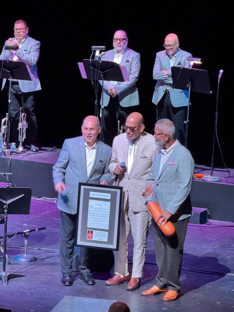 Anoche fue reconocido su taller en el jazz latino por su discípulo Humberto Ramírez, durante la segunda parte de la decimosexta edición de su Puerto Rico Jazz Jam.
