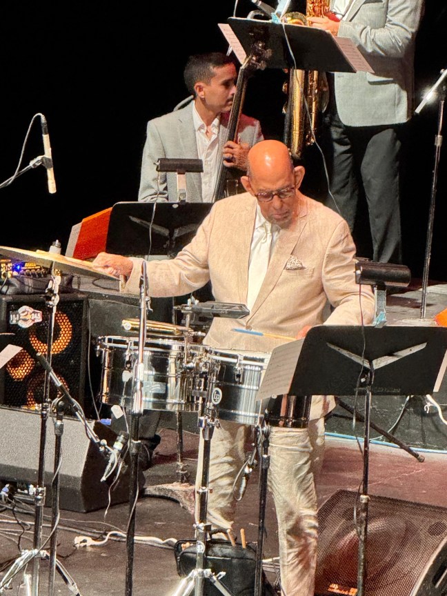 Fue la gran sorpresa de la noche; justo después del homenaje en que Humberto le entrega un cuadro. Con paso lento y la asistencia de uno de sus músicos se acercó a su timbal, asumió el control, marcó y la banda comenzó a interpretar el estándar “Mambo Inn” de Mario Bauzá y arreglo de Ray Santos.