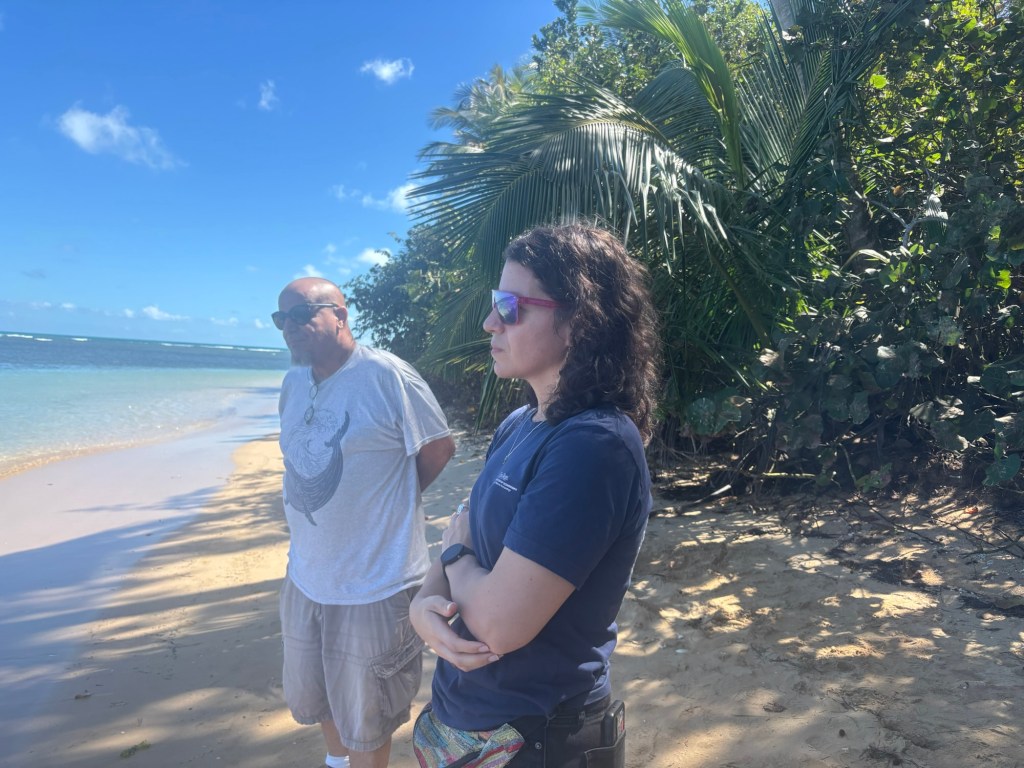 “Ahora no tenemos una marejada grande y esto es bajamar y muy probable esté secando porque parte de la arena se ve húmeda. Si tenemos una marejada se va por encima de las rampas que observamos en la orilla y entra allá adentro [en el bosque costero] donde vimos materia de algas descompuestas de hace mucho tiempo. El problema que tenemos con este tipo de legislación que se busca aprobar es que vamos a perder un espacio y no conforme con eso, si estamos desarrollando proyectos de restauración de dunas, ¿los estamos desarrollando para que les construyan encima?”, detalló Laureano al puntualizar que se afectaría el turismo playero, la biodiversidad de la zona, en particular el anidaje y eclosión de la tortuga marina, y se perjudicarían las barreras arrecifales que protegen la costa en escenarios de marejadas por eventos extremos.