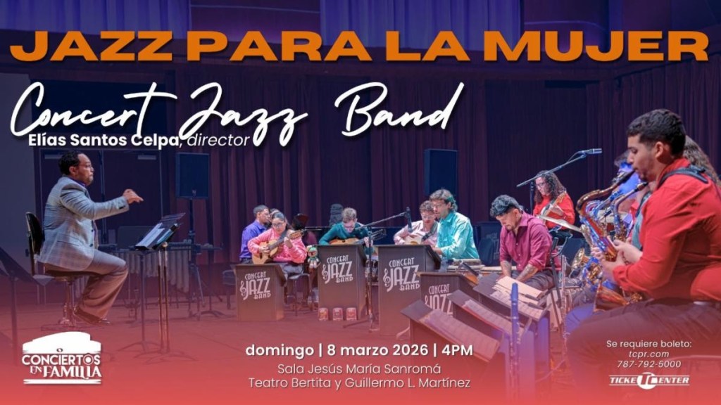 San Juan, P.R. — El Conservatorio de Música de Puerto Rico (CMPR) anuncia la presentación del concierto “Jazz para la Mujer”, a cargo de la Concert Jazz Band, el próximo domingo, 8 de marzo de 2026, a las 4:00 p. m., en la Sala Jesús María Sanromá del Teatro Bertita y Guillermo L. Martínez.