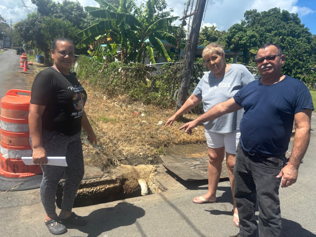 Otro vecino, don Josean, recordó que el problema no se resuelve con asfalto, sino sustituyendo la tubería, colocando un nuevo manhole y ubicando una alcantarilla en el hueco cubierto con madera descompuesta por la humedad.