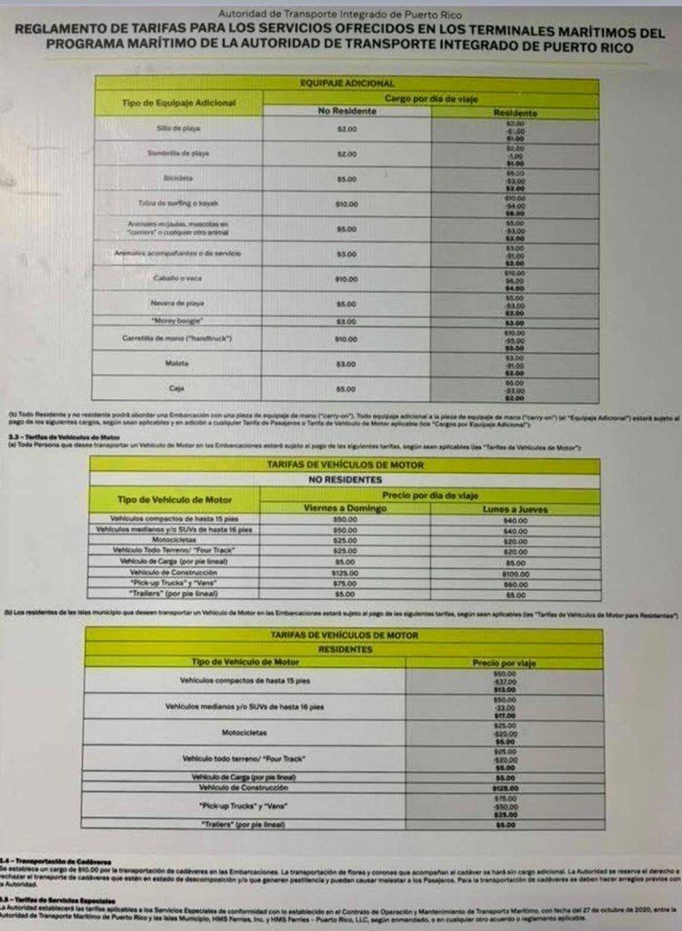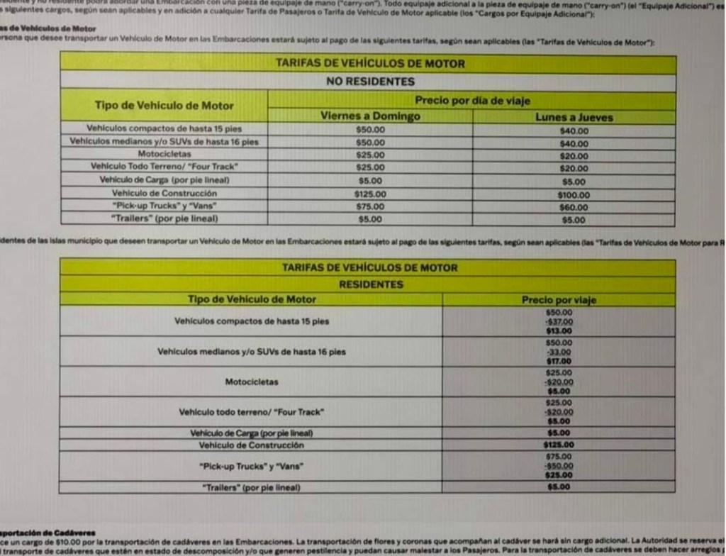 Antes por transportar un auto compacto en el ferry se pagaban $13 por viaje ida y vuelta. Ahora subirá a $100.