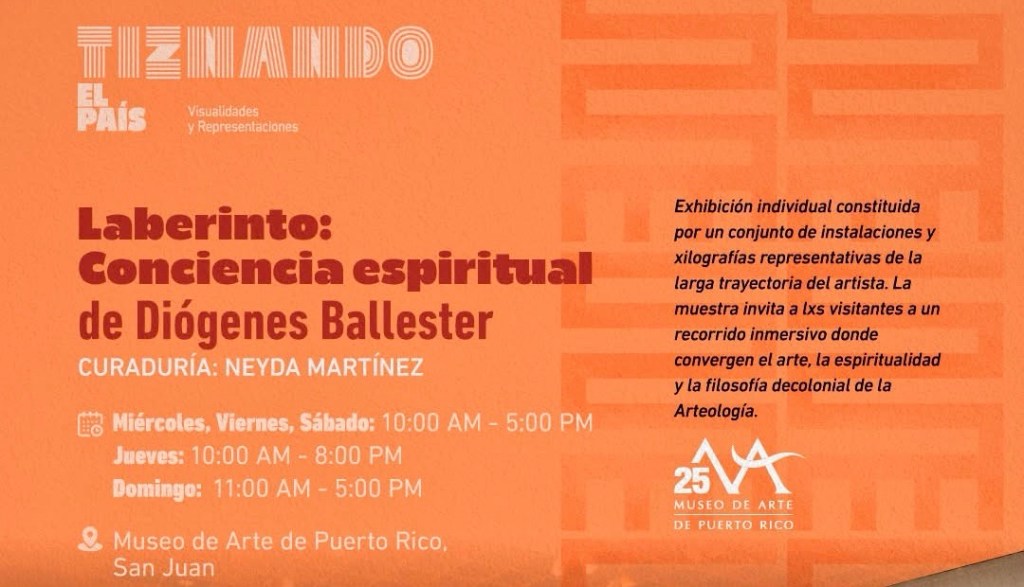 (San Juan, Puerto Rico, 9 de abril de 2026) – El Museo de Arte de Puerto Rico (MAPR), con el apoyo principal de Tiznando el País, en asociación con la Universidad de Puerto Rico (Río Piedras) y la Alianza de Museos de Puerto Rico, presenta Laberinto: Conciencia Espiritual, una exposición individual del reconocido artista afro–puertorriqueño Diógenes Ballester Rodríguez (Playa de Ponce, 1956).