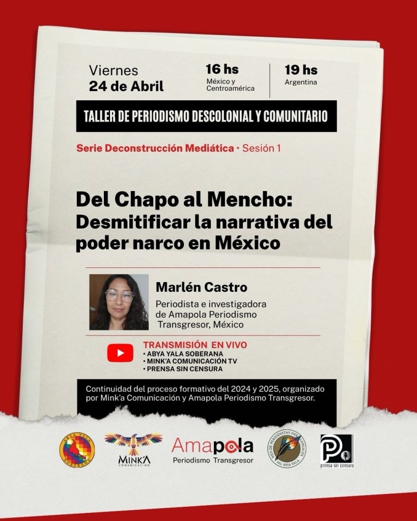 En este primer encuentro la periodista y docente Marlén Castro desde México realizará la construcción mediática: “Del Chapo al Mencho: Desmitificar la narrativa del poder narco en México”, con una mirada crítica sobre cómo se construyó la narrativa del narco todopoderoso en México y qué intereses globales sostienen ese relato.